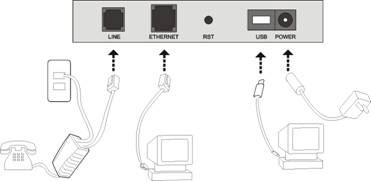 1. سیم خط تلفن را به پورت Line اسپلیتر وصل نمایید.